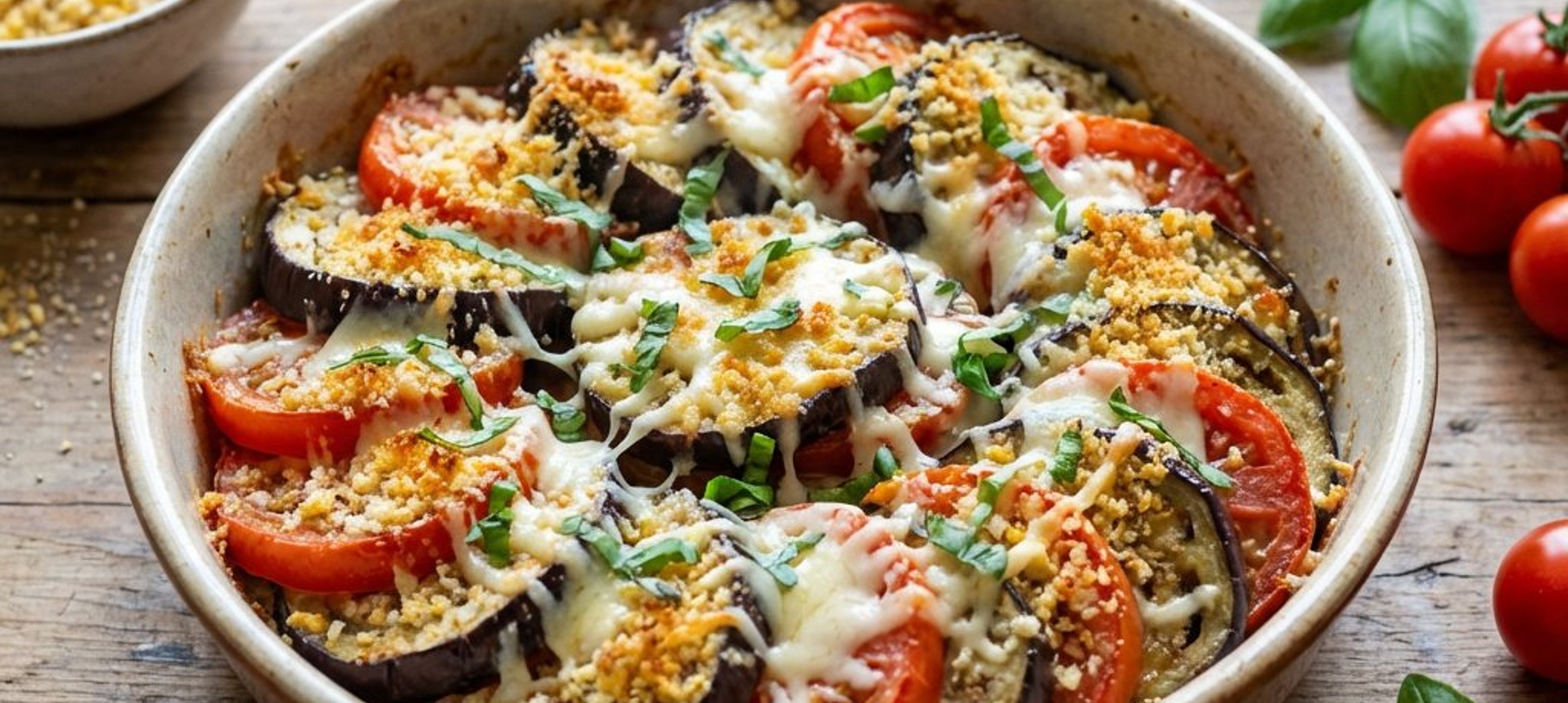 Serviți aceste vinete calde, eventual alături de o felie de pâine artizanală prăjită pentru a absorbi sosul delicios lăsat de roșii.