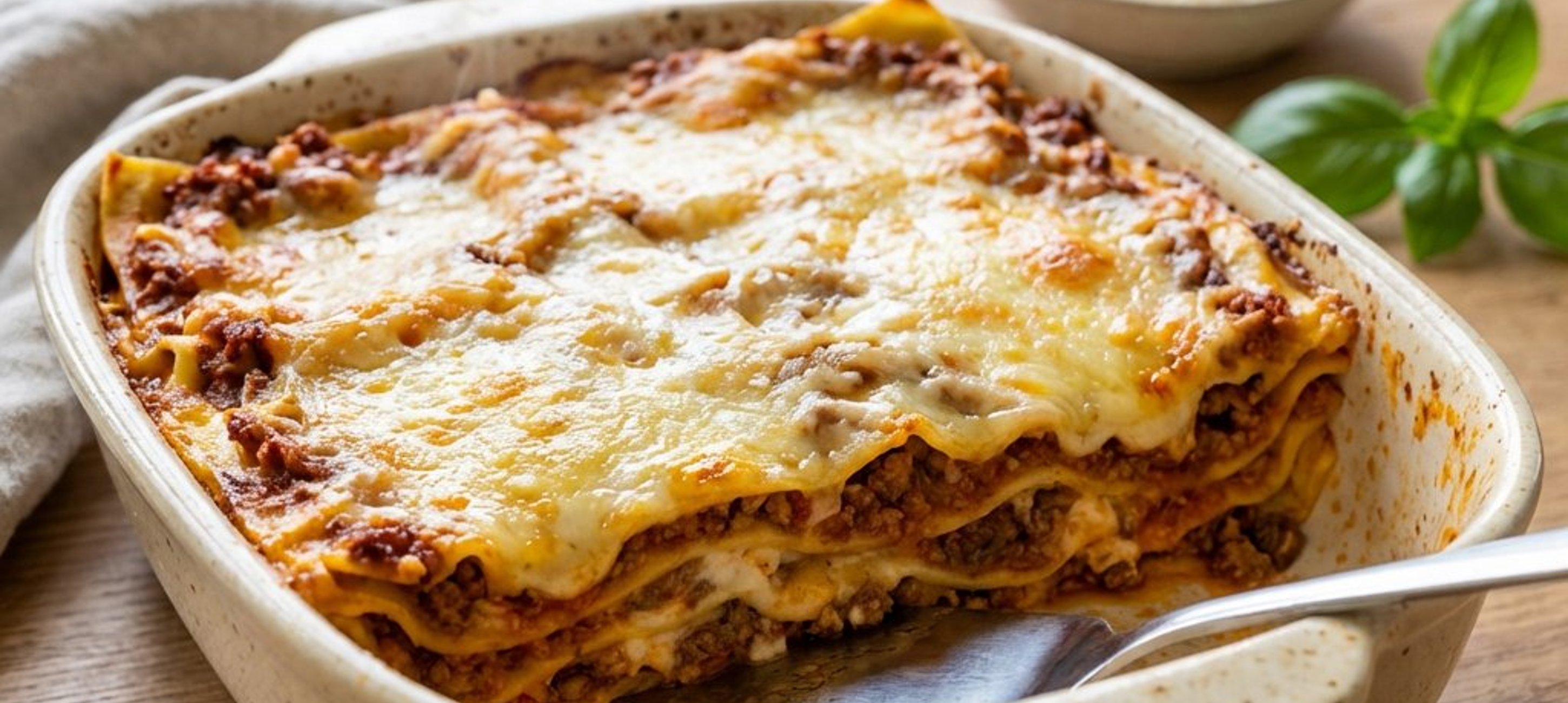 Lăsați lasagna să se odihnească 5-10 minute după ce o scoateți din cuptor; astfel se va tăia mult mai frumos în porții.