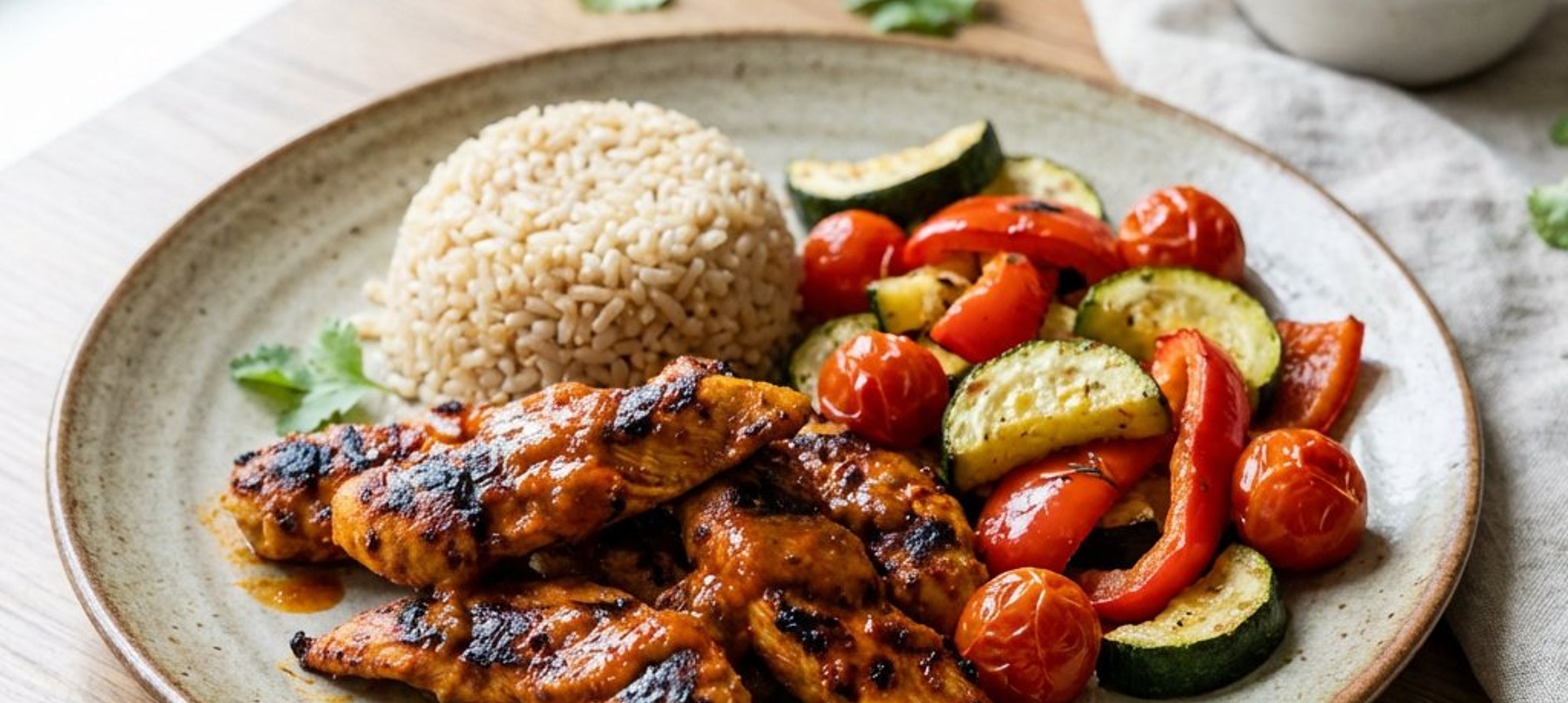 - 2Serviți puiul Piri Piri alături de orezul integral și legumele aromate. Poftă bună!