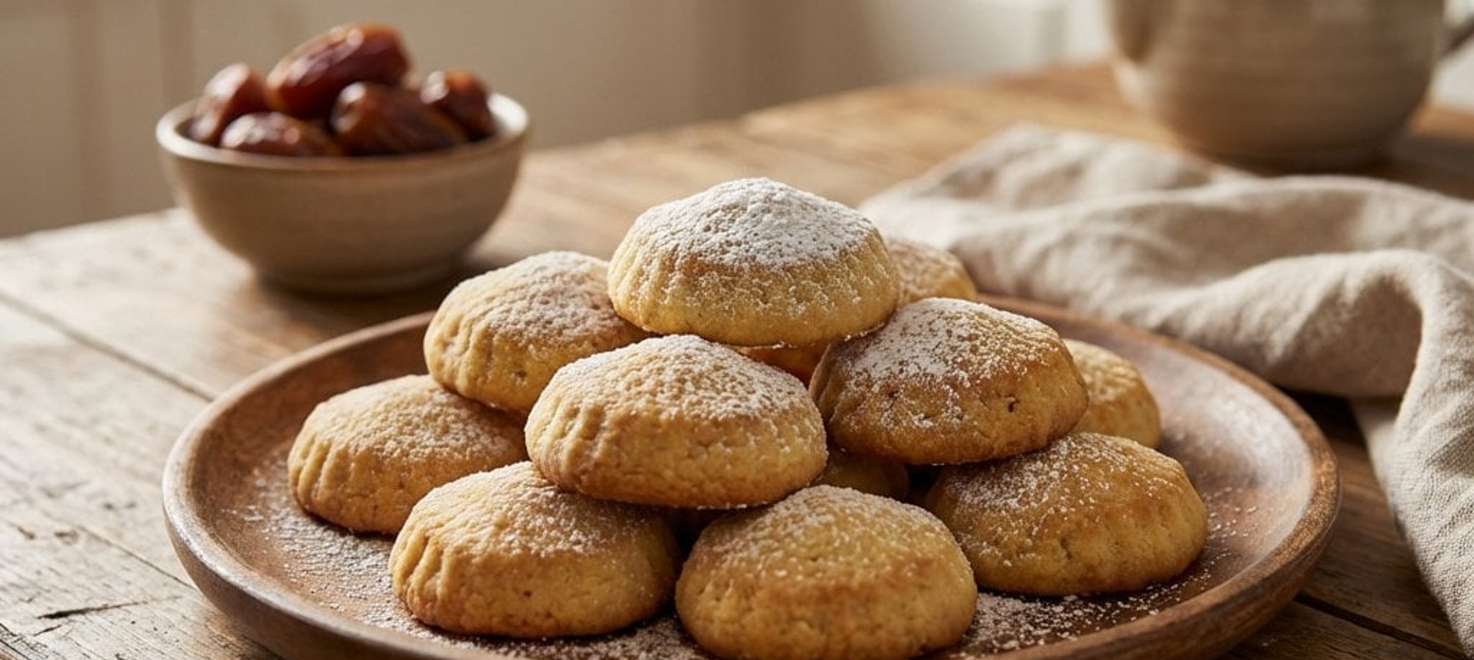 - 2Preîncălziți cuptorul la 160 °C și tapetați o tavă cu hârtie de copt. Într-un robot de bucătărie, puneți făina de spelta, uleiul de cocos, laptele, zahărul de trestie și praful de copt. Mixați timp de 1–2 minute până când toate ingredientele se combină într-o masă compactă. Împărțiți aluatul rezultat în 8 părți egale și formați bile. Aplatizați fiecare bilă în palmă pentru a forma o turtă subțire, puneți 1/8 din umplutura de curmale în centru, adunați marginile în jurul umpluturii și strângeți-le cu degetele, apoi formați din nou o bilă în palme. Așezați bilele umplute pe tava pregătită. După ce ați folosit tot aluatul și umplutura, aplatizați ușor fiecare bilă cu fundul unui pahar până când ajung la o grosime de aproximativ 0,5 cm, având grijă să nu rupeți aluatul.