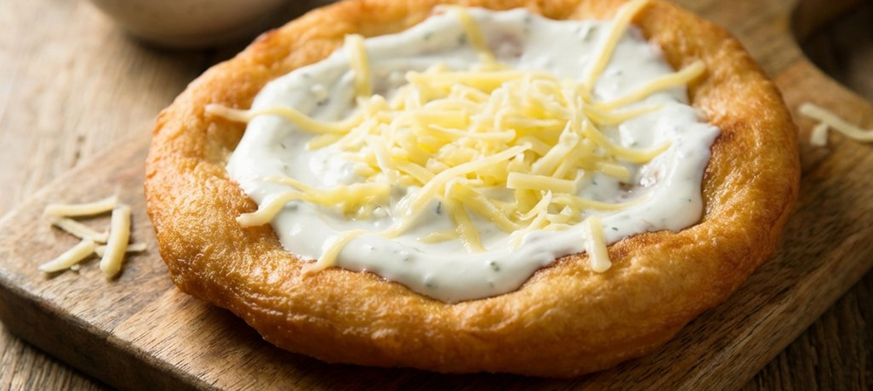 - 1Ungeți langoșii calzi cu dip-ul de brânză răcit, presărați brânza edam rasă, stropiți cu uleiul de măsline extra virgin și serviți imediat. Poftă bună!