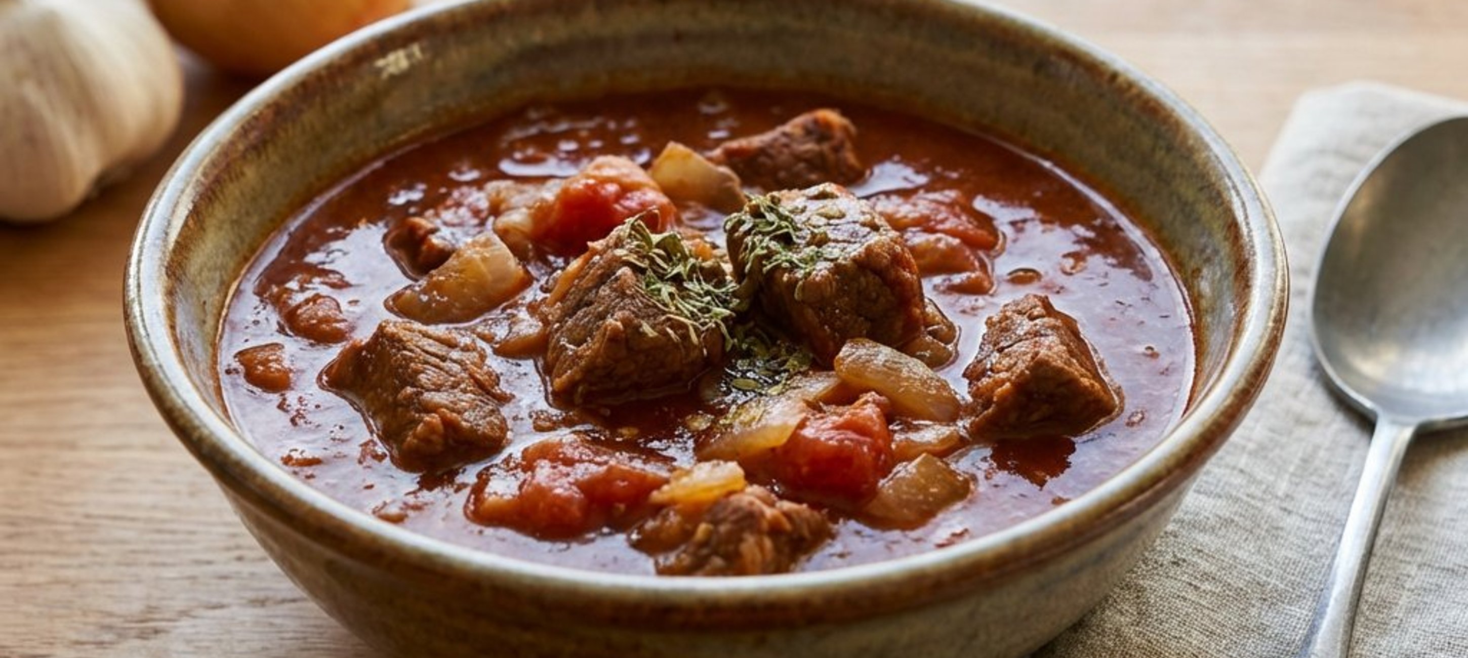 Pentru un gust și mai intens, puteți înlocui o parte din supa de vită cu un vin roșu sec. Gulașul este și mai bun a doua zi, după ce aromele s-au întrepătruns complet.