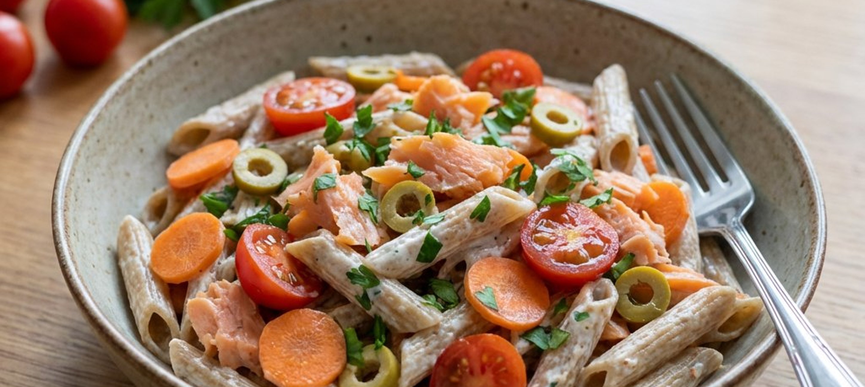 - 3Opriți focul. Încorporați iaurtul natural în amestecul de legume, apoi adăugați bucățelele de somon afumat și pastele fierte. Amestecați ușor pentru a omogeniza aromele. Presărați pătrunjelul proaspăt tocat deasupra și serviți imediat.