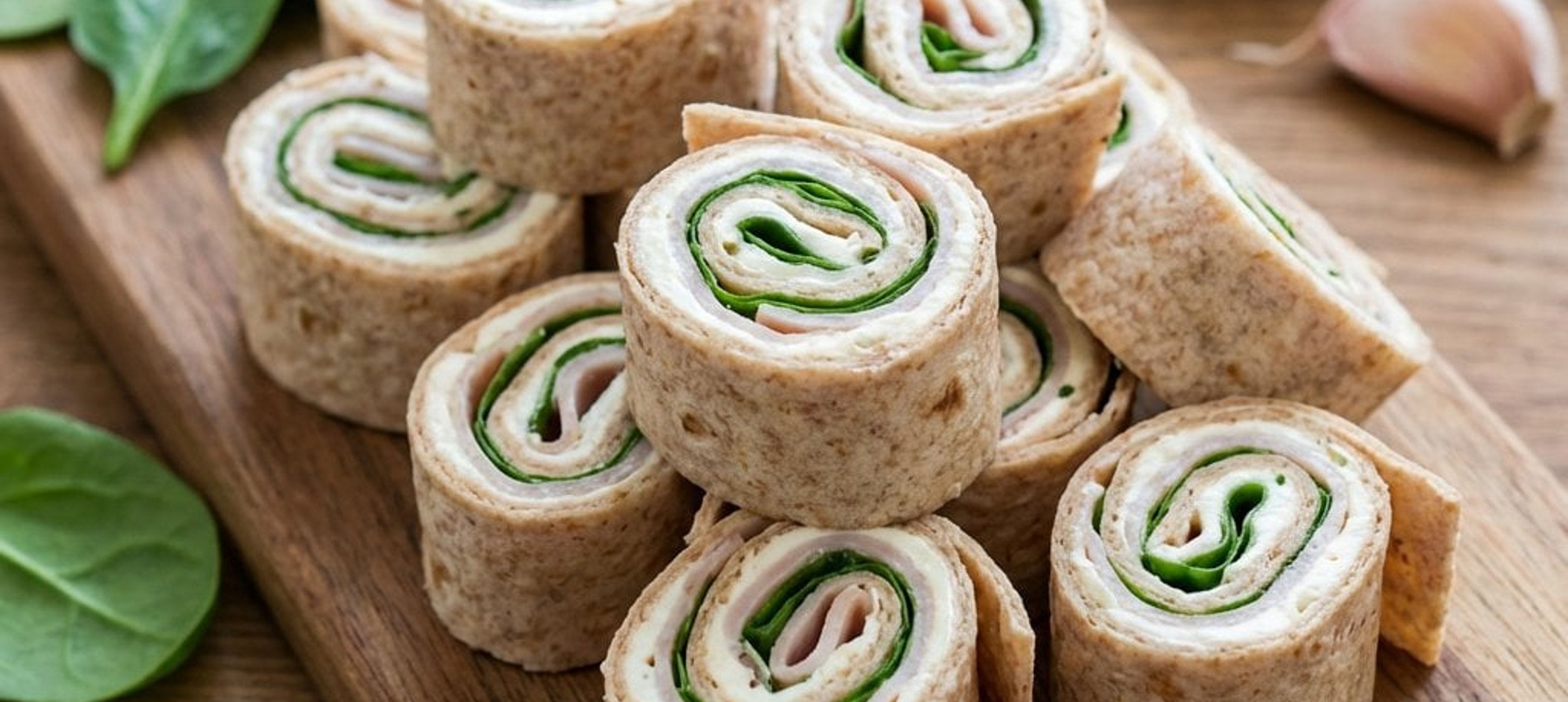 - 2Așezați tortillele pe suprafața de lucru. Întindeți uniform o treime din amestecul de cremă de brânză pe fiecare tortilla, acoperind întreaga suprafatță. În centrul fiecărei tortille, așezați o treime din cantitatea de șuncă de curcan, astfel încât feliile să nu se suprapună prea mult și să acopere cât mai mult din suprafață. Repetați același procedeu cu frunzele de spanac baby. Asigurați-vă că lăsați o margine de 1-2 cm pe o parte a tortillei fără șuncă și spanac (doar cu cremă de brânză), pentru ca ruloul să se lipească bine la final.