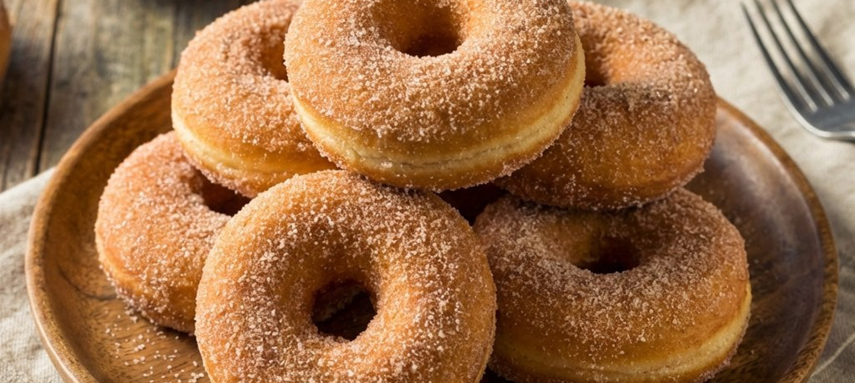 - 4După coacere, treceți gogoșile prin amestecul de zahăr și scorțișoară cât sunt încă calde. Lăsați-le să se răcească aproximativ 30 de minute înainte de servire. Poftă bună!