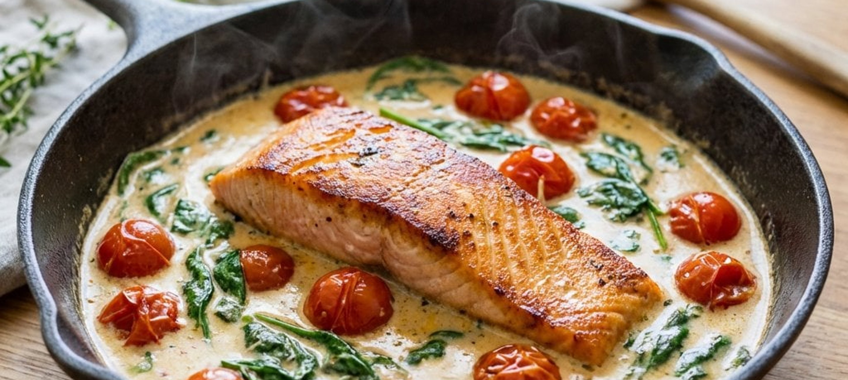 - 5Puneți fileurile de somon înapoi în sos și lăsați să fiarbă la foc mic timp de câteva minute, până când sosul scade și devine catifelat, iar somonul este gătit complet. La final, adăugați spanacul baby și, opțional, busuiocul tăiat mărunt. Serviți alături de paste sau cartofi la cuptor.