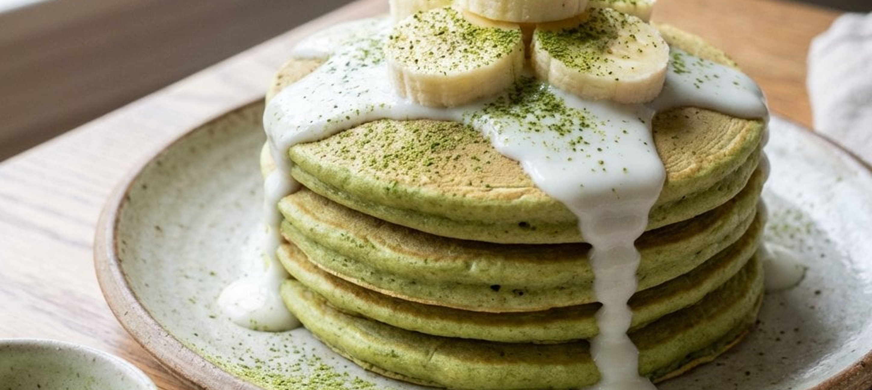 - 3La final, decorează clătitele cu feliile de banană păstrate, puțin chefir și presară deasupra pudră de matcha pentru un aspect vibrant!