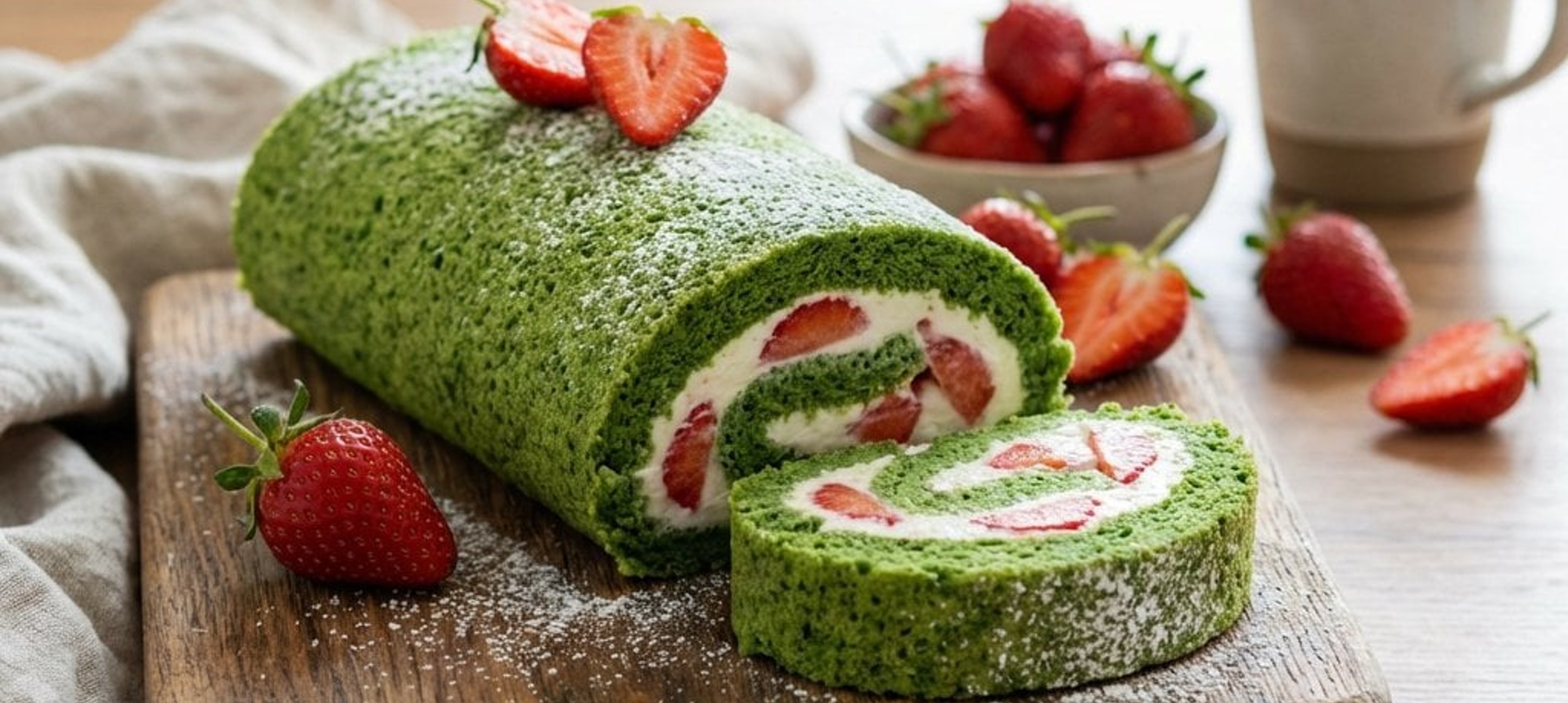 - 3La final, decorați rulada cu restul de cremă folosind un poș și așezați deasupra căpșuni proaspete tăiate. Puteți adăuga și afine, nuci sau firimituri de blat pentru un aspect autentic de „mușchi de pădure”.