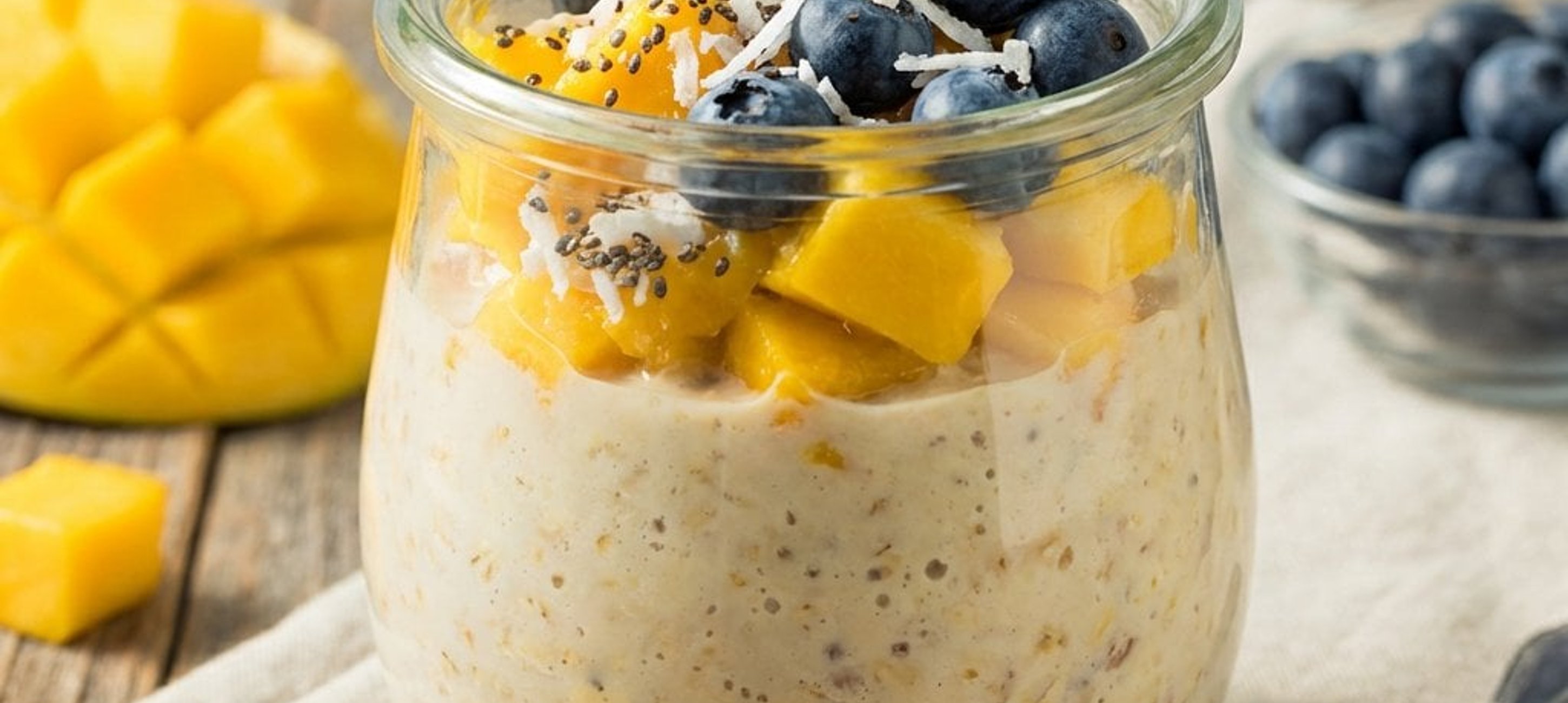 - 2Turnați amestecul într-un bol sau într-un borcan și lăsați-l la frigider peste noapte (sau cel puțin câteva ore) pentru a se întrepătrunde aromele. Înainte de servire, decorați cu afine proaspete, fulgi de cocos, semințe de chia sau orice alte fructe preferați.