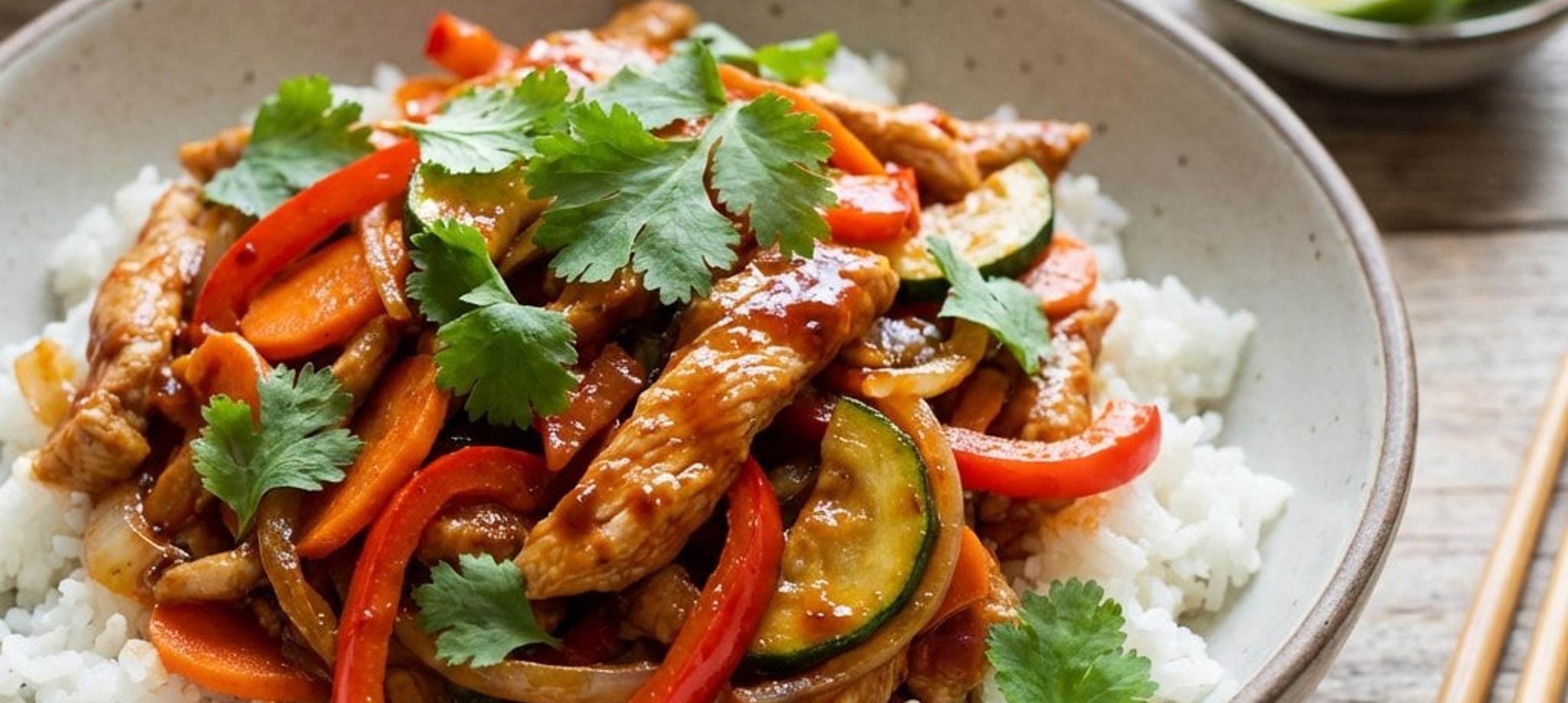 - 3Serviți imediat alături de o porție de orez fiert și presărați coriandru proaspăt tocat deasupra.