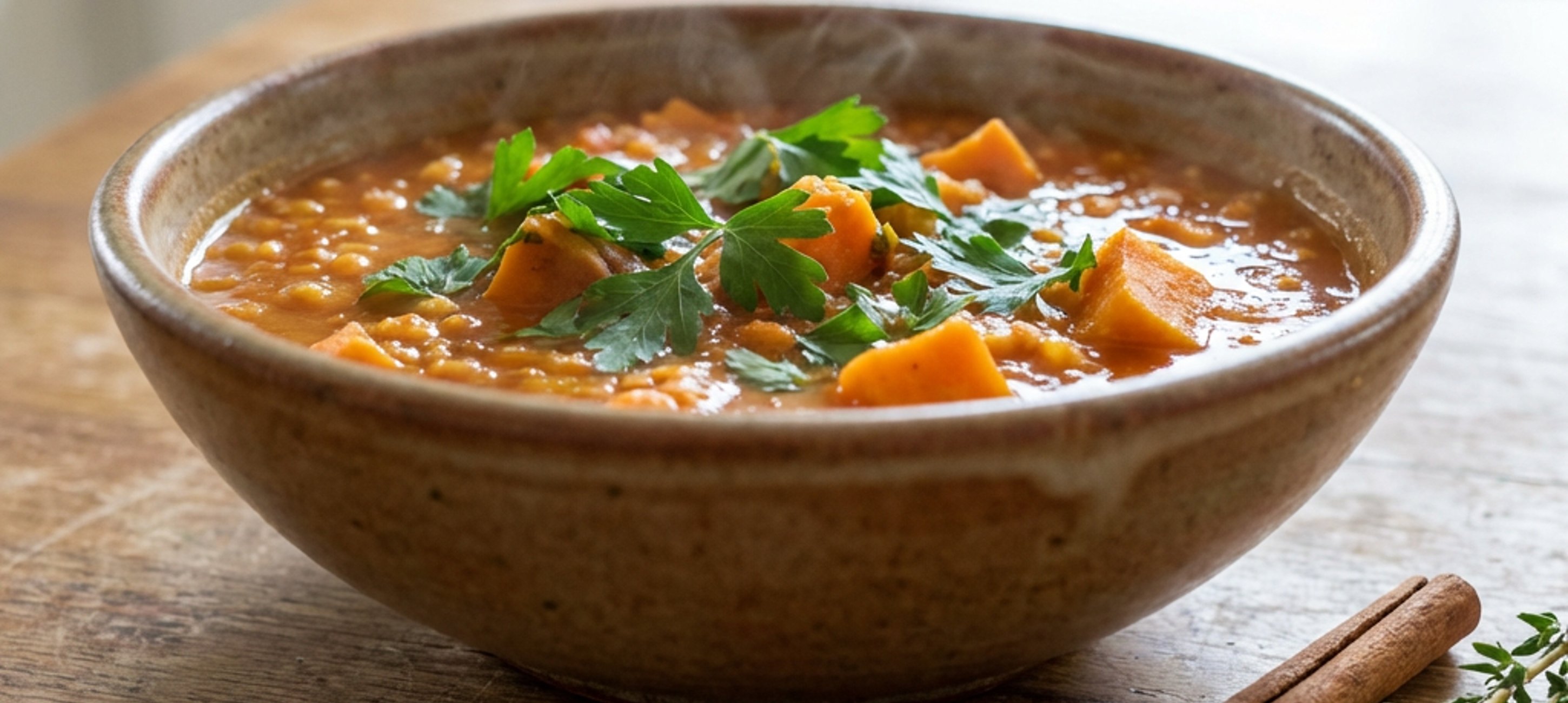 - 4Scoateți batonul de scorțișoară și crenguțele de cimbru. Încorporați pătrunjelul tocat și restul de ulei de măsline (20 ml). Asezonați cu sare după gust.