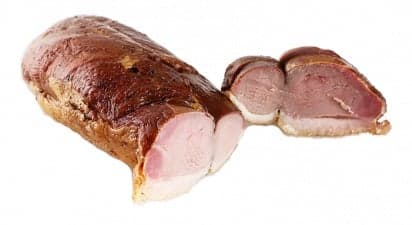 Secretul acestuia este modul artizanal in care il pregatim pentru afumare. Îl pastram cateva zile in bait cu sare de mare si mirodenii naturale, il zvantam si-l procesam in celula de fierbere-afumare. Rezultatul este un produs fara aditivi si conservanti, fraged si delicios.