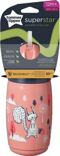 Tommee Tippee Cana cu pai, izoterma, cu protectie BACSHIELD ™, 266ml, 12 luni +, bej/roz