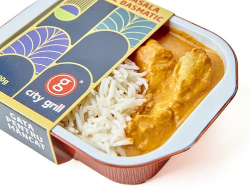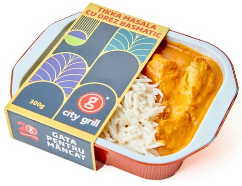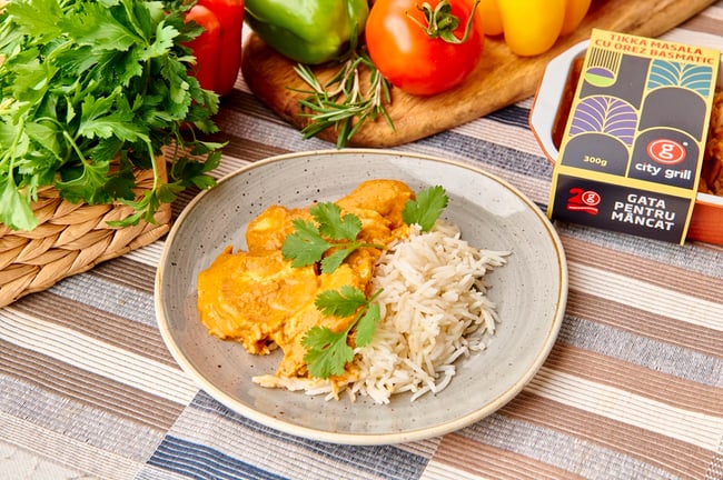 Tikka Masala with basmati rice from City Grill brings exotic and authentic aromas from Indian cuisine, carefully reinterpreted to offer a memorable culinary experience. This dish combines tender pieces of chicken, marinated in a mixture of traditional Indian spices and cooked in a rich and creamy tomato sauce, with fluffy and aromatic basmati rice. It is the ideal choice for lovers of spicy but balanced dishes, offering a perfect combination of flavors and textures.