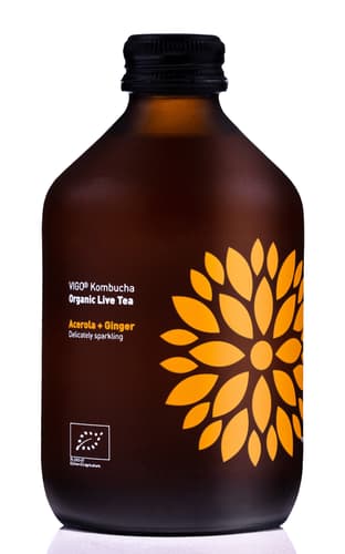 Acerola+Ginger is the perfect blend of acerola puree (high in vitamin C) from the Amazon rainforest in northern Brazil and ginger from India, Guajarhat province. Handmade and fermented organic raw kombucha, prepared with superfoods. Loaded with enzymes, electrolytes, probiotics, and live bacteria that boost your well-being. Longbrew (fermentation up to 10 days) VIGO is a natural antioxidant, aids metabolism, the immune system, and also has detoxifying properties. Therefore, it is an excellent alternative to all artificial or highly sweetened carbonated drinks, without artificial colors, preservatives, or sucrose.