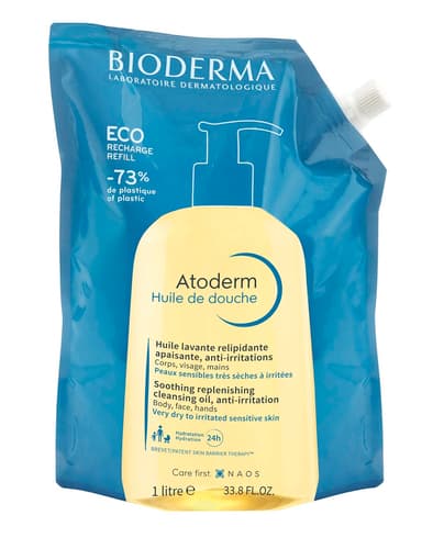 Atoderm Shower Oil is a dermatological product for the daily hygiene of very dry, irritated, and atopic skin.