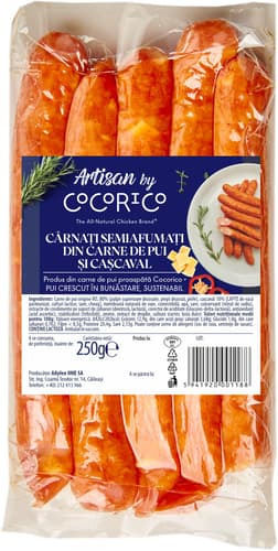 Artisan by Cocorico Carnati de pui semiafumati cu cascaval