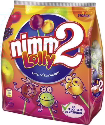 Selection of individually wrapped lollipops with fruity flavors and added vitaminsLollipops in four delicious flavors with fruit juice and vitamins. 12 lollipops, 4 flavors: orange - lemon, apple - lime, blackberry - blackcurrant, and cherry - raspberry. Net quantity: 120g ℮. Store in a dry and cool place! Preferably consume before the end/Batch number: see packaging. nimm2 was introduced to the German market in 1962 and quickly became a popular product in the country and then in other international markets. nimm2 has a unique combination of delicious sweetness and nutritional benefits, making it the perfect candy for the whole family. Each nimm2 candy is created to offer not only a savory taste but also an added boost of vitamins, thus transforming every sweet moment into a smarter choice.