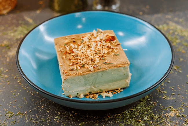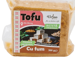 Artisanal plant-based product made from non-GMO soy, according to the original Chinese recipe. Smoked tofu is a rich source of protein and magnesium, suitable for vegan and vegetarian diets. Produced in Romania, without genetically modified organisms, artificial colorants, or preservatives.