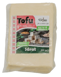 Artisanal plant-based product made from non-GMO soy, according to the original Chinese recipe. Tofu telemea is a rich source of protein and magnesium, suitable for vegan and vegetarian diets. Produced in Romania, without genetically modified organisms, artificial colorants or preservatives.