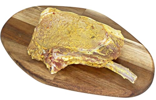 Cotlet de Porc cu os,ulei de rapita, mustar 18% (apa, seminte de mustar, otet, sare, condimente, extracte de