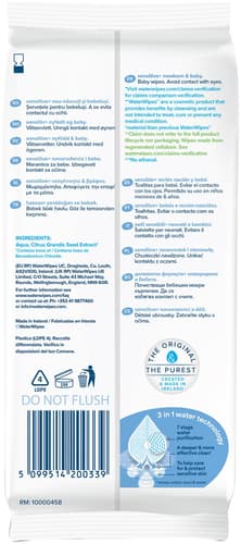 WaterWipes Sensitive Biodegradable Baby Wipes are the purest baby wipes in the world, made with 99.9% water and a drop of fruit extract. They are suitable for newborns and premature babies. Effective yet gentle on babies' skin, WaterWipes are a convenient alternative to cotton wool and water, ideal for cleaning your baby's delicate skin.