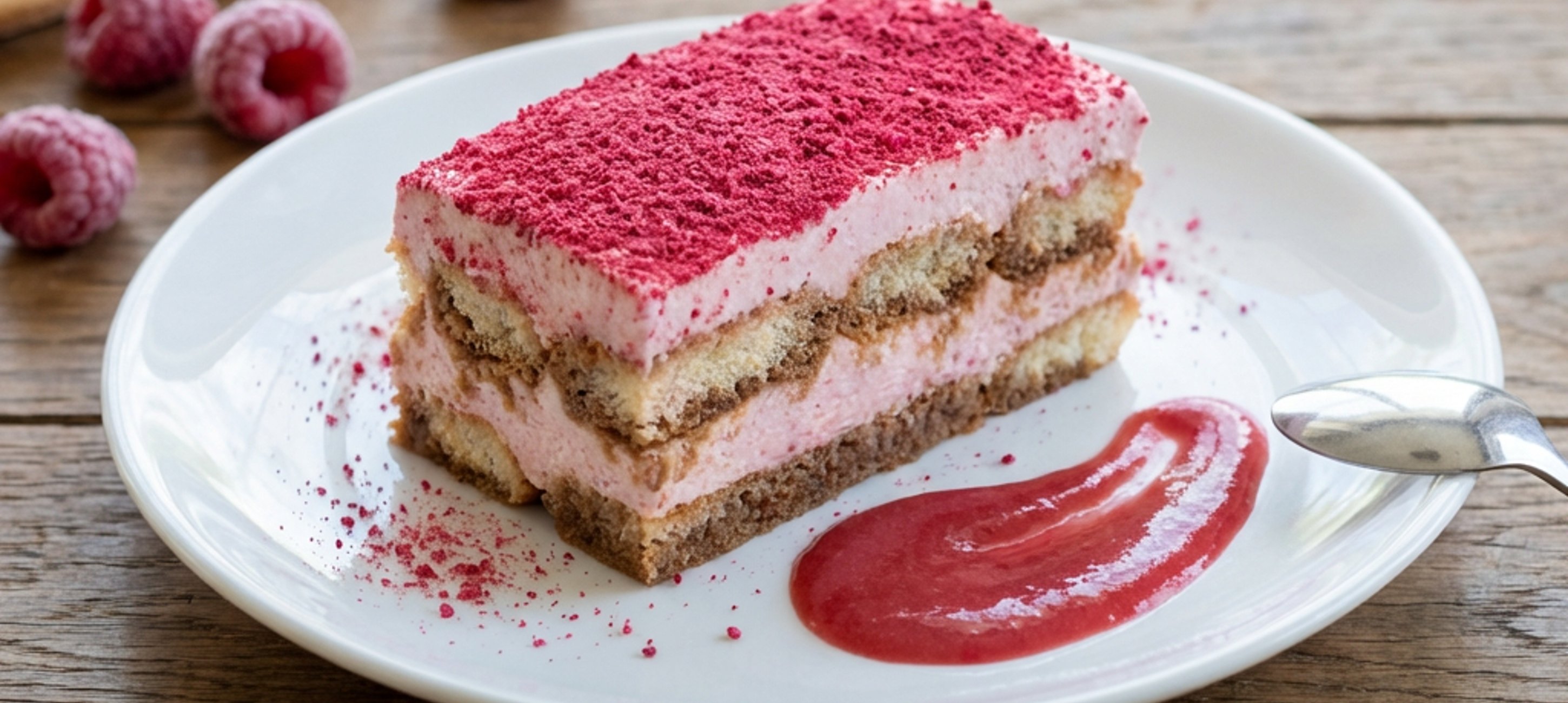 - 6Repeat the process for the second layer and refrigerate overnight to set. Before serving, grind the remaining freeze-dried raspberries and sprinkle over the tiramisu through a sieve.