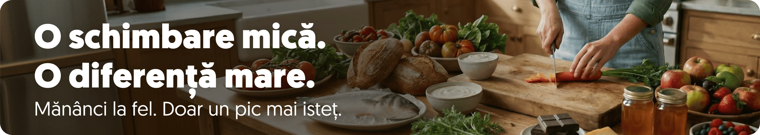 A mânca mai conștient nu înseamnă să mănânci mai puțin. Nici să ții dietă sau să renunți la ce îți place. Înseamnă să mănânci cu mai multă bucurie și energie, datorită unor alegeri mai inteligente. Nu trebuie să numeri calorii, să colinzi magazine specializate și cu atât mai puțin să-ți dai alimentația peste cap. Sunt suficiente câteva schimbări mici în cumpărăturile de zi cu zi. De exemplu, să înlocuiești pâinea albă cu pâine cu maia. Uleiul rafinat cu ulei de avocado. Ciocolata cu lapte cu una neagră, de calitate. Pași mici, care însă fac o diferență mare.Mănâncă la fel. Doar puțin mai inteligent.